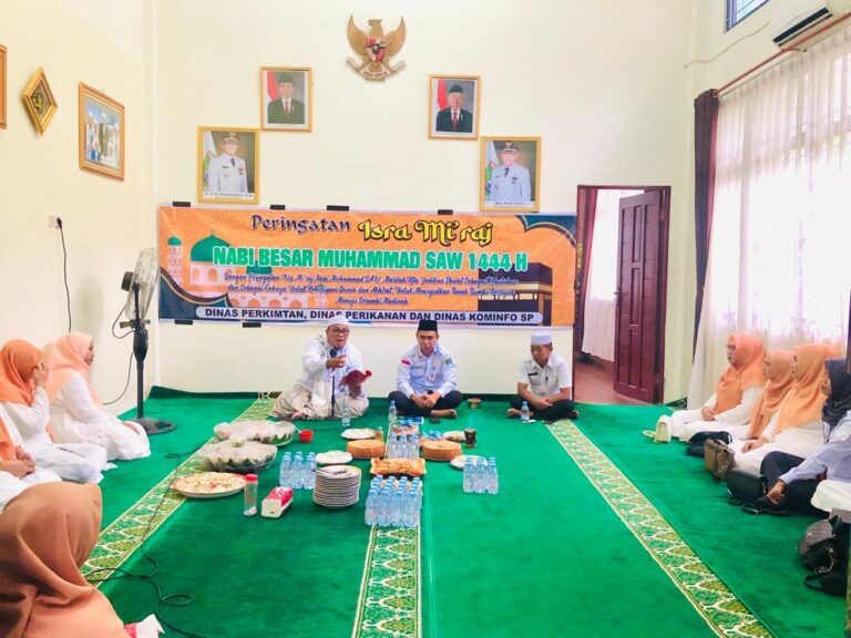 Tanah Bumbu — Dharma Wanita Persatuan (DWP) dari tiga Unit yaitu DWP Unit Dinas Komunikasi Informatika Statistik dan Persandian (DiskominfoSP), DWP Unit Dinas Perumahan Rakyat Kawasan Pemukiman dan Pertanahan (Disperkimtan), dan DWP Unit Dinas Perikanan Kabupaten Tanah Bumbu menggelar peringatan Isra Mikraj Nabi Besar Muhammad SAW 1444 Hijriah dalam pertemuan rutin bulanan, Rabu (15/2/2023) bertempat di Aula Disperkintan Tanbu.