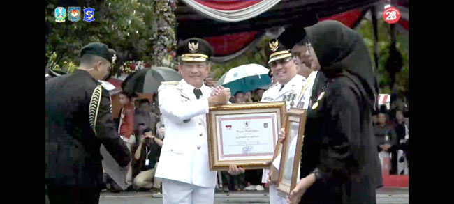 Keduanya diberikan pada Upacara Peringatan Hari Otonomi Daerah ke-28 di Surabaya yang dihadiri langsung oleh Pj Bupati Sumedang Yudia Ramli.