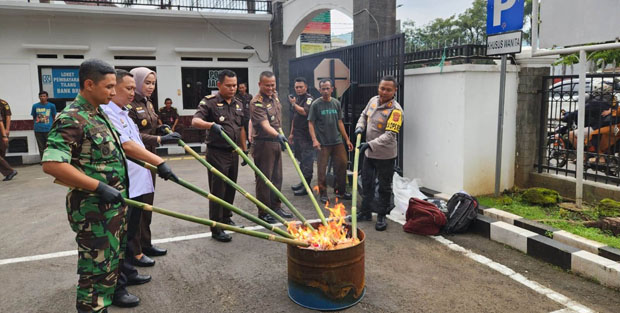 Pemusnahan barang bukti yang telah berkekuatan hukum itu dipimpin langsung Kepala Kejari (Kajari) Sumedang, Yenita Sari dengan dihadiri Kapolres Sumedang AKBP Dwi Harsono, Dandim 0610 Sumedang Letkol Kav Christian Gordon Rambu, Kepala Lapas Kelas II B Sumedang Ratri Handoyo Eko Saputro.