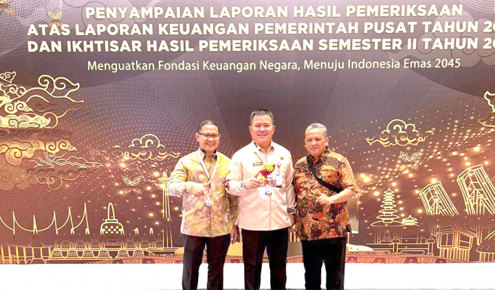 JAKARTA,– Pj. Bupati Maybrat, Bernhard E. Rondonuwu, menghadiri Penyampaian Laporan Hasil Pemeriksaan Atas Laporan Keuangan Pemerintah Pusat (LHP LKPP) tahun 2023 dan Ikhtisar Hasil Pemeriksaan Semester II Tahun 2023 yang diselenggarakan oleh BPK RI, di Jakarta, Senin (8/7).