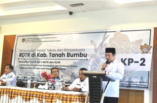 Bupati Tanah Bumbu, dr. H.M. Zairullah Azhar, yang diwakili oleh Staf Ahli Bidang Kemasyarakatan dan SDM, Putu Wisnu Wardana, menyampaikan bahwa sesuai dengan UU Cipta Kerja, tata ruang menjadi syarat dasar dalam perizinan berusaha. “Melalui penataan ini, kami berharap seluruh masyarakat dapat memanfaatkan ruang dengan bijak, agar tercipta keseimbangan antara kepentingan ekonomi, sosial, dan lingkungan,” ungkapnya.