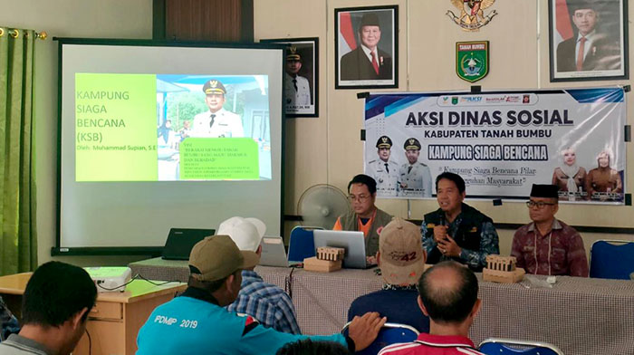 TANAH BUMBU, – Pemerintah Kabupaten Tanah Bumbu (Pemkab Tanbu) melalui Dinas Sosial Tanah Bumbu menggelar Sosialisasi Kampung Siaga Bencana (KSB) dengan tema “Kampung Siaga Bencana Pilar Ketangguhan Masyarakat”.