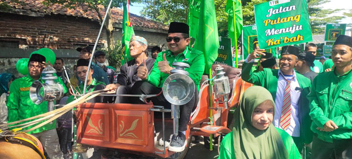 Iringi-iringan rombongan DPC PPP dimeriahkan dengan menghadirkan puluhan becak dan delman yang membawa para Bacaleg. Rombongan perempuan dengan menggunakan berbagai kostum menarik juga turut menghantarkan DPC PPP saat mendaftarkan Bacaleg ke KPU Kabupaten Sumedang.