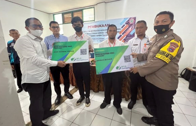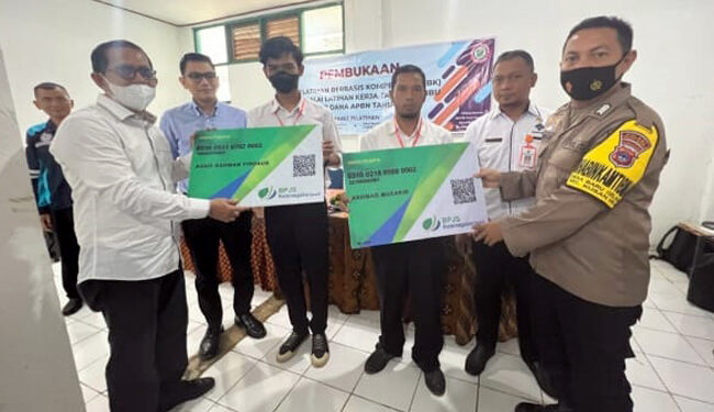 Hal itu ditandai dengan penyerahan Kartu BPJS Ketenagakerjaan secara simbolis oleh Avian Noor kepada perwakilan peserta dengan disaksikan perwakilan BPJS Ketenagakerjaan dan tamu undangan lainnya. (Ag)
