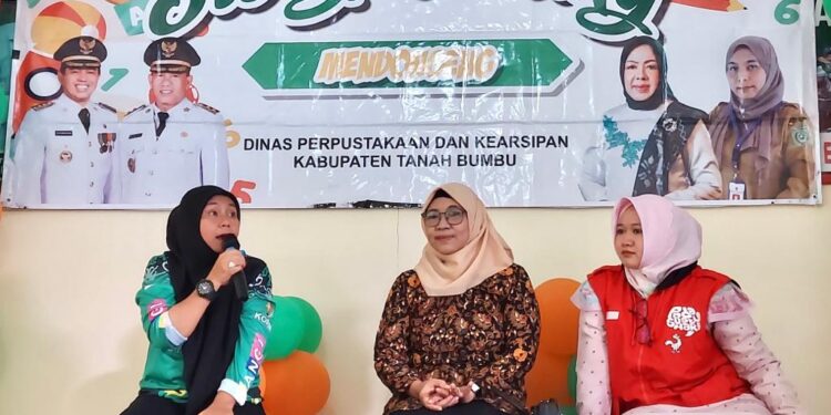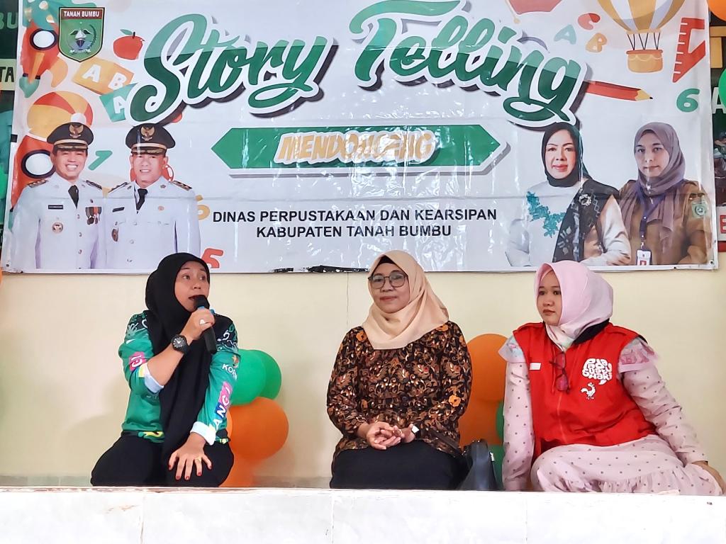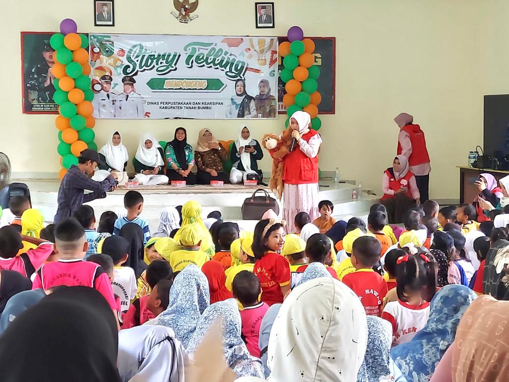 Tanah Bumbu — Mengawali Festival Literasi Bersujud Tahun 2023, Dinas Perpustakaan dan Kearsipan (Dispersip) Kabupaten Tanah Bumbu (Tanbu) menggelar Story Telling.