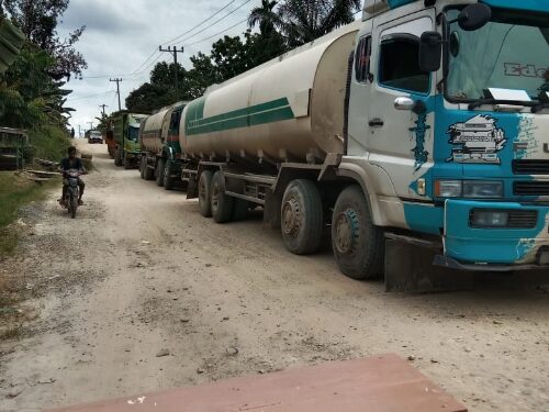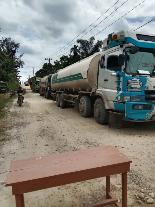 Akibatnya puluhan mobil angkutan CPO yang bertonase berat tersebut tidak dapat melintas rintangan yang di lakukan oleh emak-emak ,baik untuk keluar maupun masuk ke wilayah perusahaan itu.