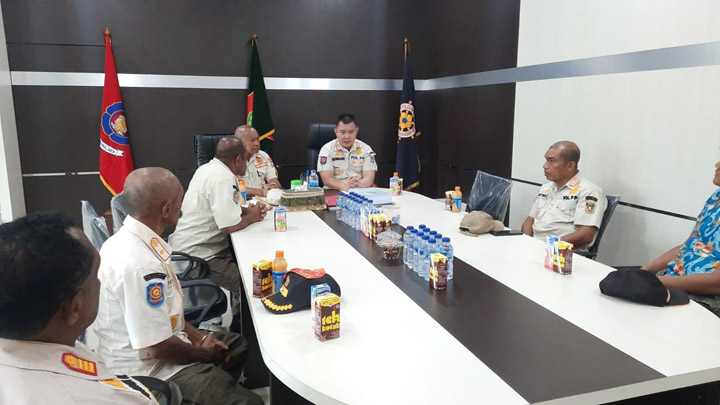 Kedatangan Bernhard disambut hangat Kasatpol PP Provinsi Papua, Welliam R Manderi, beserta jajarannya.