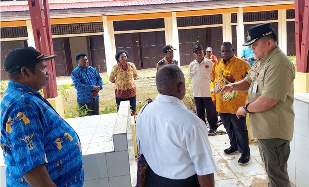 MAYBRAT,— Penjabat (Pj) Bupati Maybrat, Bernhard E. Rondonuwu mengunjungi Pasar Sahbur untuk meninjau langsung lokasi program revitalisasi, Kamis (13/6).