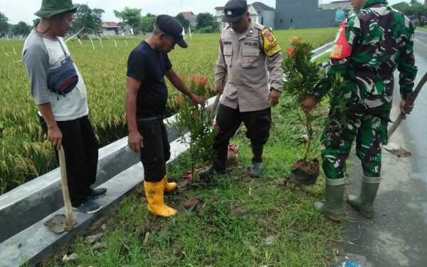 Karawang,-Bhabinkamtibmas bersama Babinsa melaksanakan kunjungan silaturahmi dan sekaligus kerja bakti penanaman pohon untuk penghijauan.
