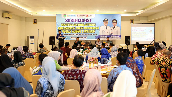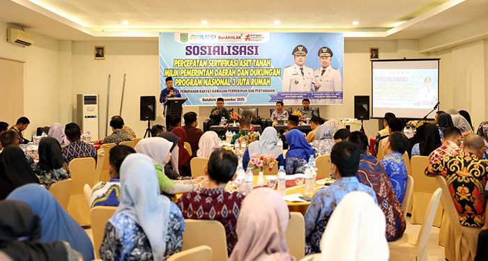 TANAH BUMBU, – Pemerintah Kabupaten Tanah Bumbu (Pemkab Tanbu) melalui Dinas Perumahan Rakyat, Kawasan Permukiman dan Pertanahan (Disperkimtan) Tanbu menggelar sosialisasi percepatan sertifikasi aset tanah milik pemerintah daerah dan dukungan program nasional Tiga Juta Rumah, berlangsung di Batulicin, pada Kamis, 18 Desember 2025.
