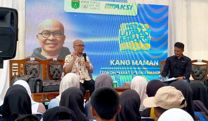 Dalam sesi yang dihadiri siswa SMA, pegiat literasi, dan masyarakat umum, Kang Maman menekankan pentingnya membaca dan menulis sebagai modal utama dalam kehidupan.