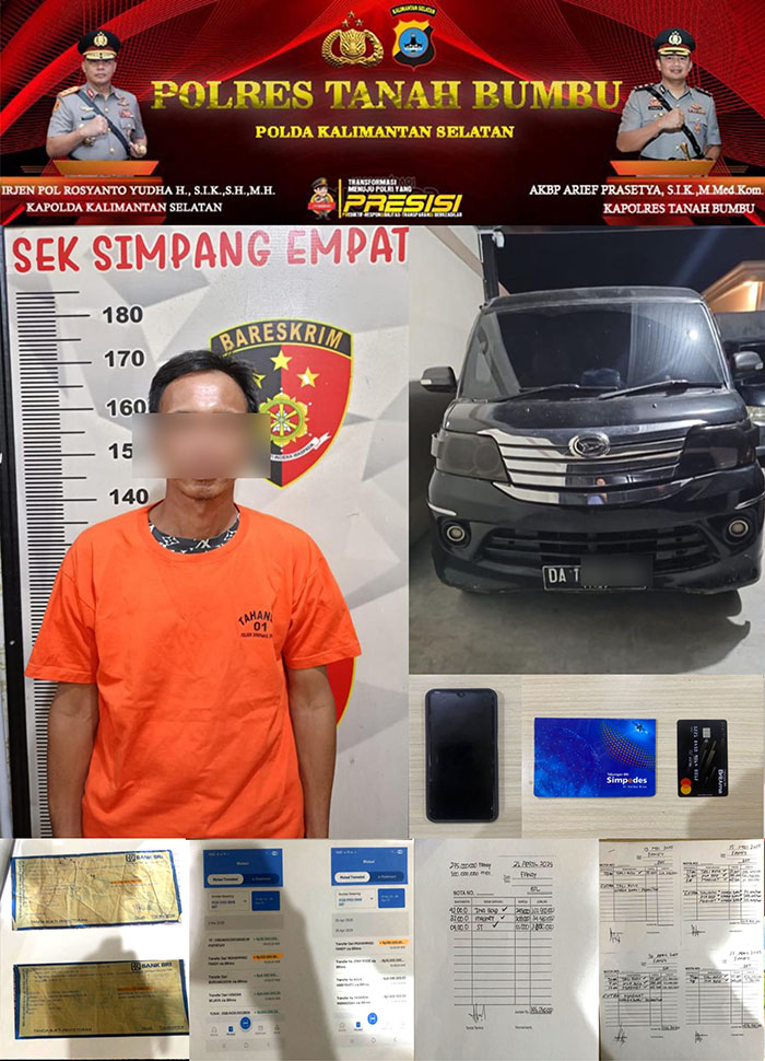 TANAH BUMBU, — Unit Reskrim Polsek Simpang Empat Polres Tanah Bumbu berhasil mengungkap kasus tindak pidana penggelapan dalam jabatan sebagaimana dimaksud dalam Pasal 374 KUHP. Seorang sales rokok berinisial MF warga Jl. Manggis Ujung RT. 04/01 Desa Guntung Paikat Kec. Banjarbaru Selatan, ditangkap setelah menggelapkan uang hasil penjualan rokok, dengan tolal kerugian mencapai Rp. 2,4 miliar lebih, Kamis (04/09/2025).