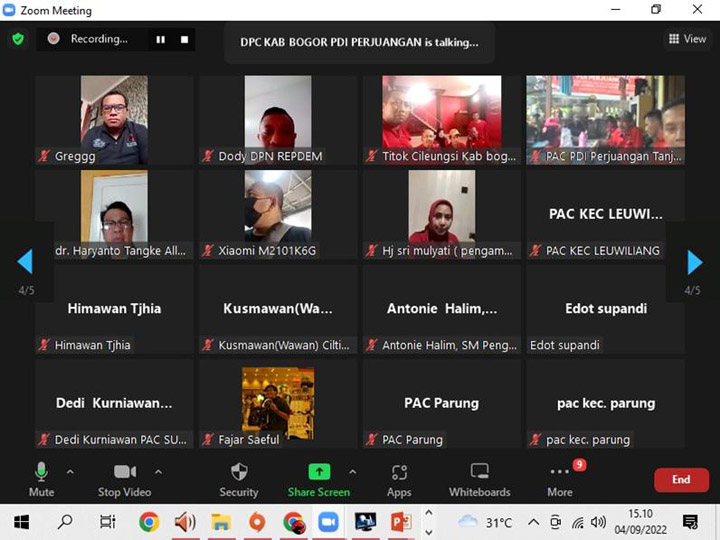 BOGOR,– Guna menindaklanjuti hasil rapat koordinasi pengampu dapil bersama DPC partai pada 31 Agustus 2022 lalu, Dewan Pimpinan Cabang (DPC) PDI Perjuangan Kabupaten Bogor menggelar rapat, melalui zoom meeting pada Minggu, 4 September 2022.