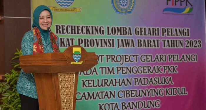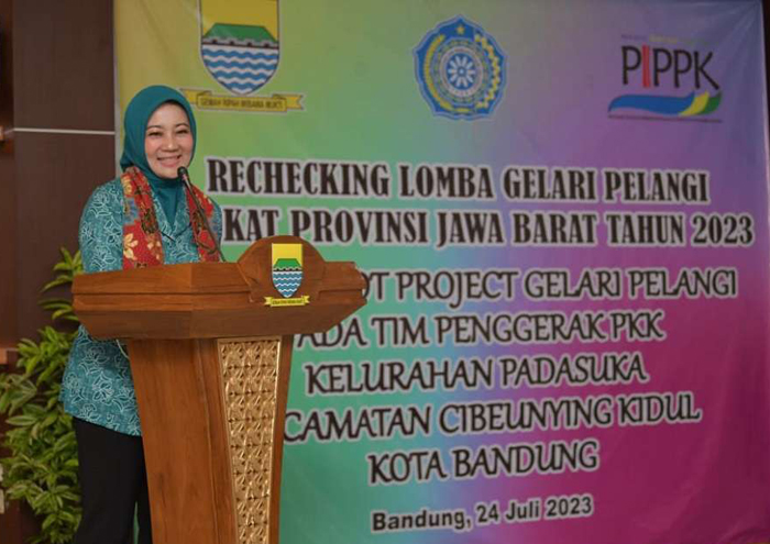 KOTA BANDUNG – Ketua Tim Penggerak PKK Provinsi Jawa Barat Atalia Praratya Ridwan Kamil melaksanakan Rechecking Gelari Pelangi Tingkat Provinsi Jawa Barat Tahun 2023 di kantor Kelurahan Padasuka, Kota Bandung, Senin (24/7/2023).