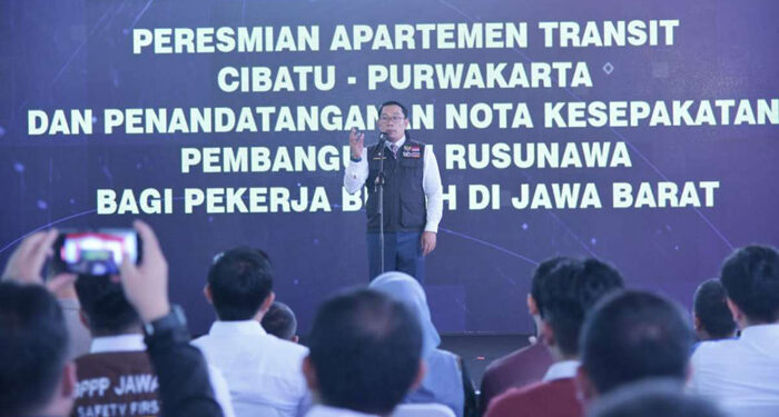 KAB. PURWAKARTA – Gubernur Jawa Barat Ridwan Kamil meresmikan Apartemen Transit bagi masyarakat berpenghasilan rendah di Desa Cilandak, Kecamatan Cibatu, Kabupaten Purwakarta, Selasa (18/7/2023).