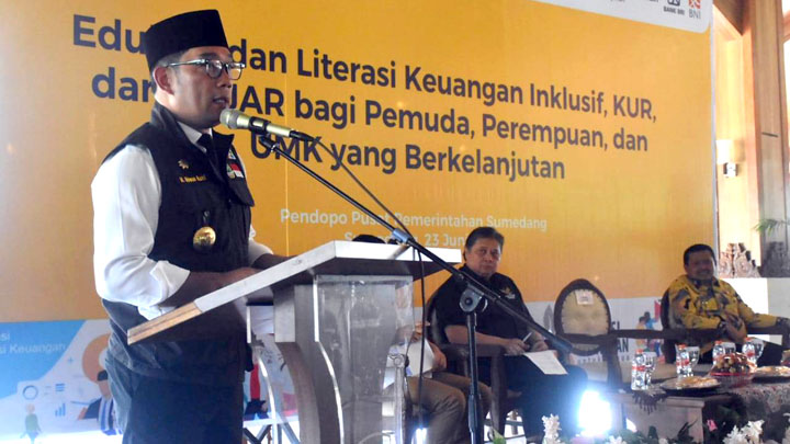 Hal tersebut diungkapkan gubernur yang karib disapa Kang Emil, saat menghadiri Edukasi dan Literasi Keuangan Inklusif KUR dan KEJAR bagi Pemuda, Perempuan dan UMK yang Berkelanjutan di Kabupaten Sumedang, bertempat di Pendopo PPS, Jumat (23/6).