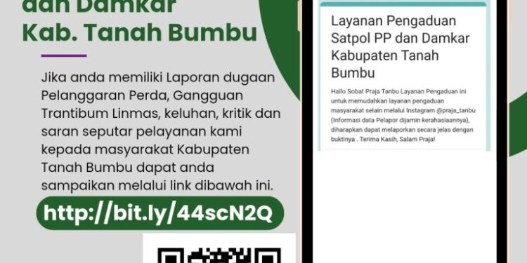 Tanah Bumbu — Dinas Satpol PP dan Pemadam Kebakaran (Damkar) Kabupaten Tanah Bumbu (Tanbu) membuka layanan pengaduan online.