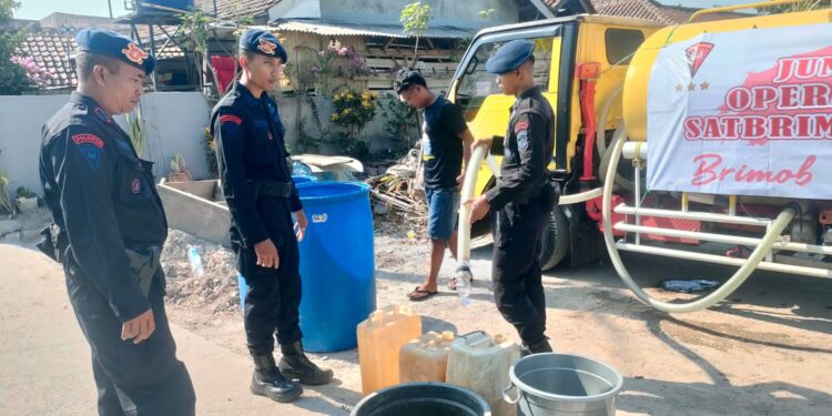 Anggota Kompi 1 Batalyon A Pelopor Satuan Brimob Polda Jabar Hadir ditengah tengah Masyarakat untuk melaksanakan kegiatan Pendistribusian Air Bersih.
