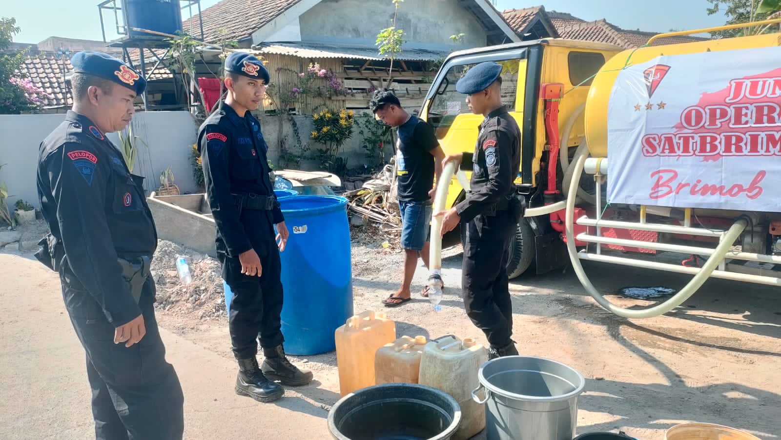 Anggota Kompi 1 Batalyon A Pelopor Satuan Brimob Polda Jabar Hadir ditengah tengah Masyarakat untuk melaksanakan kegiatan Pendistribusian Air Bersih.