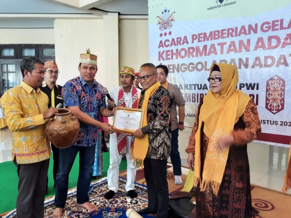 Sebagai bentuk penghormatan, Dewan Adat Dayak (DAD) Kabupaten Lamandau menganugerahi gelar Ketum PWI, Atal S Depari, dengan Gelar Adat Omas Pena Setia Jaya.