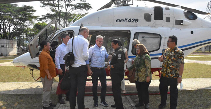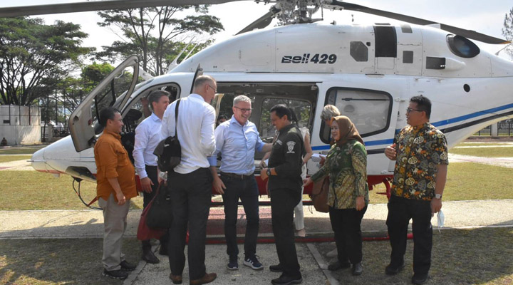 SUMEDANG,– Suara gemuruh helicopter Bell 429 yang membawa rombongan Menteri Kerja Sama Pembangunan Denmark di atas langit kawasan Pusat Pemerintahan Sumedang (PPS) menarik perhatian banyak orang untuk menyaksikan mendaratnya pesawat tersebut.