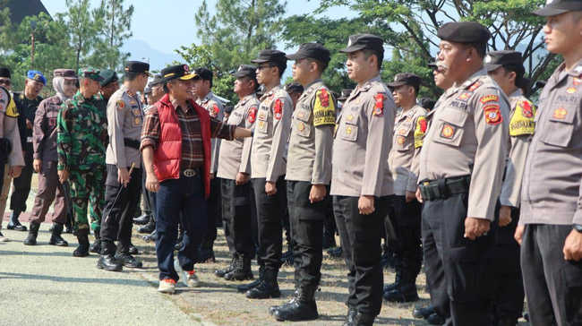 SUMEDANG,– Pj. Bupati Sumedang, Herman Suryatman mengikuti Apel Gelar Pasukan Operasi Mantap Brata Lodaya 2023-2024, Pengamanan Pemilu Tahun 2024 di Lapangan PPS Setda, Selasa (17/10/2023).
