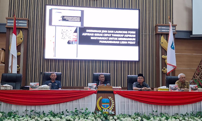 Acara launching Getar Melesat berlangsung di Ruang Rapat Paripurna DPRD Pangandaran, bersamaan dengan kegiatan Sosialisasi JDIH, pada Selasa, 26 Agustus 2025 lalu.