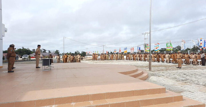 MAYBRAT,– Upaya memberikan rasa aman dan sejahtera, Pj. Bupati Maybrat memimpin apel pagi dalam dirangkaikan penandatanganan Pakta Integritas Kinerja OPD dan Perjanjian Kerjasama Perlindungan Tenaga Kontrak (Non ASN) Kabupaten Maybrat, Senin (5/9).