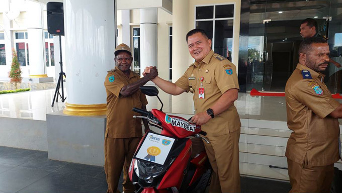 Hadiah motor yang diserahkan kepada para pemenang didukung penuh oleh Bank Papua Cabang Maybrat.