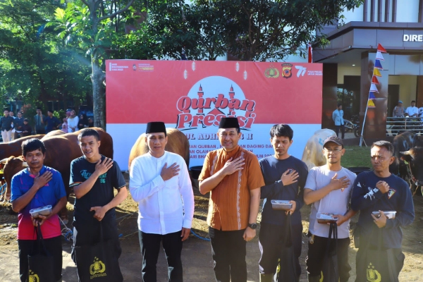 Bandung,-Kepolisian Daerah Jawa Barat mengadakan program Kurban Polri Presisi dalam rangka memperingati Hari Raya Idul Adha 1444 H, sekaligus Hari Bhayangkara ke-77. Dalam program ini, Polri menyerahkan dan mendistribusikan ribuan hewan kurban baik sapi dan kambing.