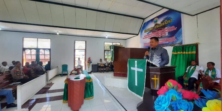 Selepas beribadah, Pj. Bupati Maybrat berkesempatan memberikan sambutan dengan penyampaian bahwa saat ini konsen pemerintah adalah terkait isu eksodus.