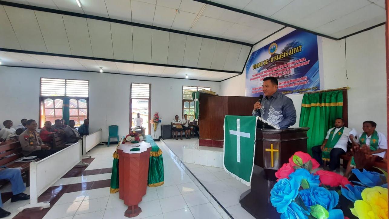 Selepas beribadah, Pj. Bupati Maybrat berkesempatan memberikan sambutan dengan penyampaian bahwa saat ini konsen pemerintah adalah terkait isu eksodus.