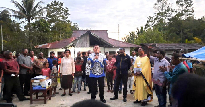 MAYBRAT,– Pj. Bupati Maybrat, Bernhard E. Rondonuwu mengikuti malam paskah di Paroki Santo Ambrosius Suswa, Kampung Suun Distrik Mare, sekaligus menyerahkan laptop dan printer untuk mendukung pelayanan kepada Paroki, Sabtu (8/4/2023).