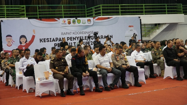 Pemda Jawa Barat menggelar rapat koordinasi (Rakor) persiapan penyelenggaraan pemilihan umum (Pemilu) tahun 2024 yang digelar di Gedung Laga Tangkas Sport Jabar Arcamanik Jl. Pacuan Kuda No.140 Kota Bandung.