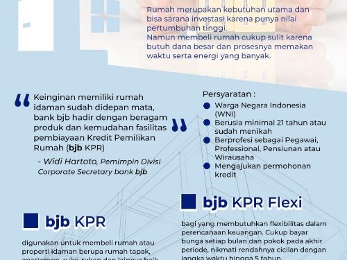 “Keinginan memiliki rumah idaman sudah didepan mata, bank bjb hadir dengan beragam produk dan kemudahan fasilitas pembiayaan Kredit Pemilikan Rumah (bjb KPR),” ujar Widi.