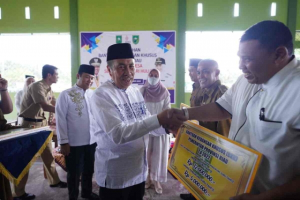 RIAU, -Kabupaten Indragiri Hulu Riau di nilai berhasil mengentaskan desa tertinggal dengan memanfaatkan Bantuan Keuangan Khusus(BKK), hal tersebut di katakan Gubernur Riau Syamsuar disela-sela saat menyerahkan Bantuan Keuangan Khusus kepada desa-desa se-Kabupaten Indragiri Hulu secara simbolis baru-baru ini di Kecamatan Lirik Rabu (16/11/2022).