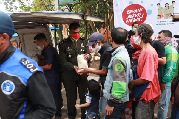 Pada kegiatan tersebut Polres Cimahi Polda Jabar dan Kodim 0609 Cimahi membagikan beras sebanyak 200 karung beras yang setiap karung berisi 3kg beras kepada warga masyarakat Kota Cimahi yang membutuhkan.
