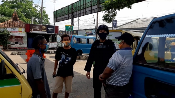 Karawang,-Anggota kompi 3 Batalyon C Pelopor Menyambangi sopir angkutan umum di terminal tanjungpura karawang pada kesempatan itu saya menyampaikan pesan-pesan.