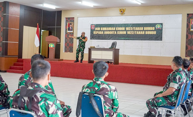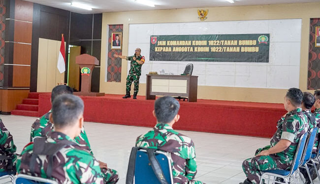 TANAH BUMBU, — Kodim 1022/Tanah Bumbu melaksanakan kegiatan “Jam Komandan” pada Senin, 19 September 2022. Kegiatan ini menjadi kegiatan rutin Dandim 1022/Tnb guna memberikan arahan dan pencerahan kepada Anggota Kodim 1022/Tanah Bumbu.