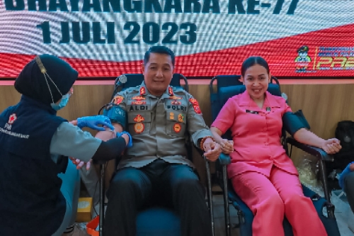CIMAHI, — Polres Cimahi menggelar kegiatan bakti sosial donor darah. Kegiatan tersebut dilakukan dalam rangka menyambut hari jadi Bhayangkara yang ke-77 tahun pada 1 Juli mendatang.