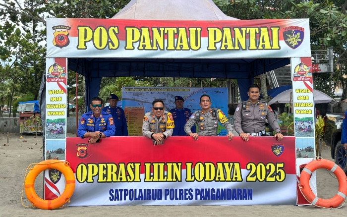 Melalui Pos Pelayanan Sunset Pangandaran, Polres Pangandaran berkomitmen menjaga keamanan dan ketertiban masyarakat selama libur Natal dan Tahun Baru 2026. Polres Pangandaran juga mengimbau wisatawan agar selalu mematuhi aturan, menjaga keselamatan diri dan keluarga, serta bersama-sama menciptakan suasana wisata yang aman dan nyaman. (Supriatna)