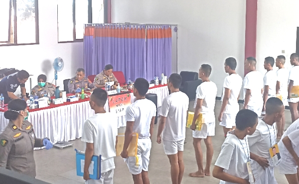 Lebih lanjut dikatakn Kabidokes, dalam pemeriksaan kesehatan tahap satu, meliputi pisik seperti pemeriksaan tinggi badan, mata, THT, gigi, tensi, dan lainnya.