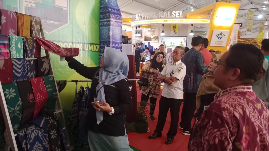 Tampak, Stand Tanah Bumbu menampilkan kain tenun Pagatan beserta berbagai kerajinan bermotif lainnya.
