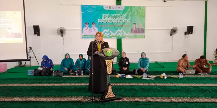 “Sebagai Kepala Daerah, Bupati merasa terhormat bisa berbicara kepada saudara semua mengenai upaya kita bersama-sama untuk melindungi hak-hak anak, guna memastikan pengembangan penuh potensi anak,. Serta memberikan mereka hak untuk berpartisipasi dalam kehidupan masyarakat.,”kata Narni.
