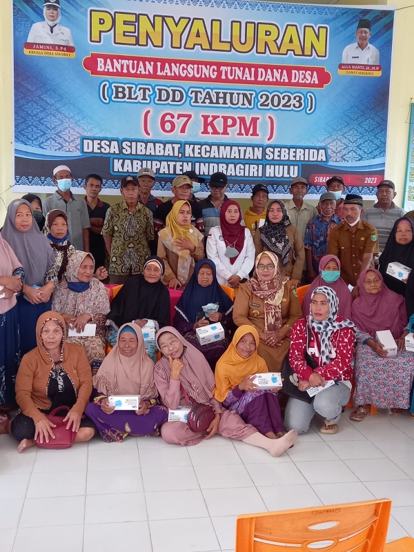 RIAU,- Kepala Desa Sibabat, Kecamatan Seberida Kabupaten Indragiri Hulu Riau, Jamini S.Pd menyalurkan Bantuan Langsung Tunai (BLT) kepada 67 KPM (Keluarga Penerima Manfaat ) tahun anggaran 2023 yang dilaksanakan Senin (10/4/2023) bertempat di aula Kantor Kepala Desa Sibabat .