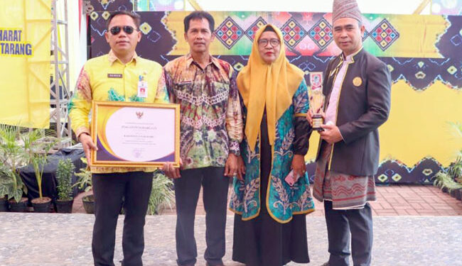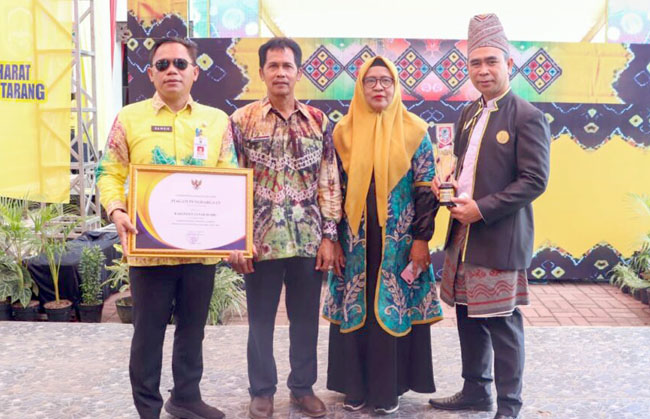 Penghargaan tersebut diserahkan Gubernur Kalsel kepada Bupati Tanah Bumbu yang diwakili oleh Staf Ahli Bupati Bidang Pemerintahan Hukum dan Politik, H Ansyari Firdaus yang didampingi Kepala Badan Keuangan Aset dan Daerah H. Syamsuddin, Kepala Dinas Pemberdayaan Masyarakat dan Desa, Samsir serta Kabag Protokol dan Komunikasi Pimpinan, Dwi Dibyo Raharjo.