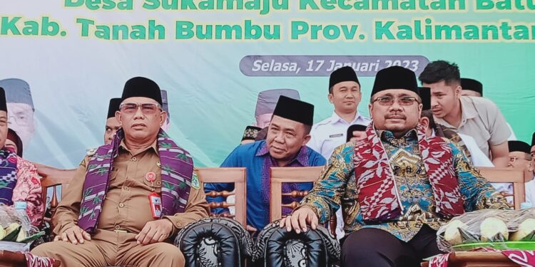 Tanah Bumbu, – Kunjungan kerja Mentri agama RI,H.Yaqut Cholil Qoumas di Kabupaten Tanah Bumbu, Selasa,17/1/2023, kedatangan di Kab.Tanah Bumbu beserta rombongan di sambut Bupati Tanah Bumbu, diwakili wakil Bupati M. Rusli,karena Bupati bertepatan tugas luar daerah,serta didampingi ,Anggota DPRD, Kapolres,Dandim 1022 ,Danlanal, Kajari,atau yang mewakili SKPD dan tokoh agama dan masyarakat,tepatnya di Desa Sukamaju,Kec.Batulicin ,Kab.Tanah Bumbu.
