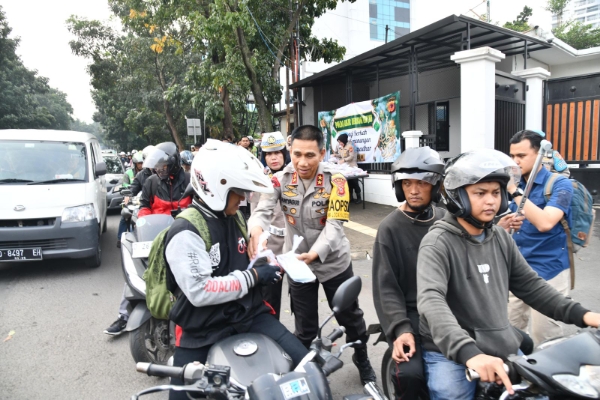 Ribuan takjil dibagikan kepada para pengendara motor yang melintas di kawasan itu.