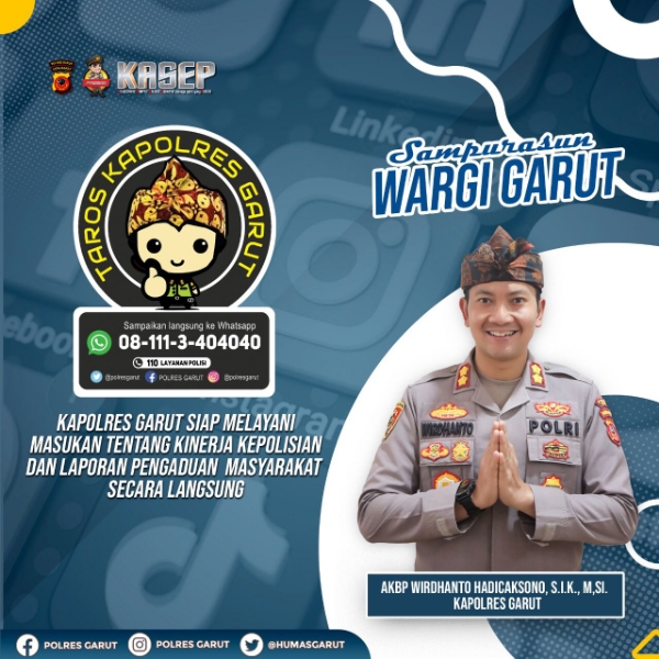 081113404040 , itu merupakan nomor saya pribadi dan Insyaallah saya akan merespon secepat mungkin untuk memudahkan keluhan maupun aduan dari masyarakat Kab.Garut yang membutuhkan bantuan dari Polres Garut.”Tutup Kapolres Garut Polda Jabar.Ibrhim