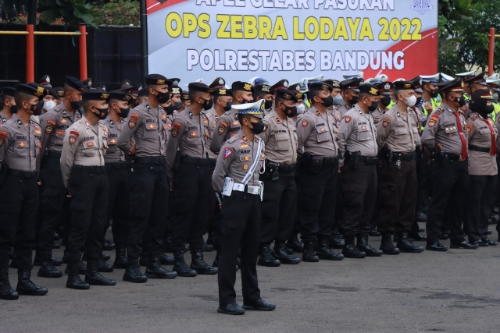 BANDUNG, — Kapolrestabes Bandung Kombes Pol H Aswin Sipayung S.I.K.,M.H pimpin Apel Gelar Pasukan Operasi “Zebra Lodaya-2022” di Lapangan Apel Polrestabes Bandung, Senin (3/10/2022).